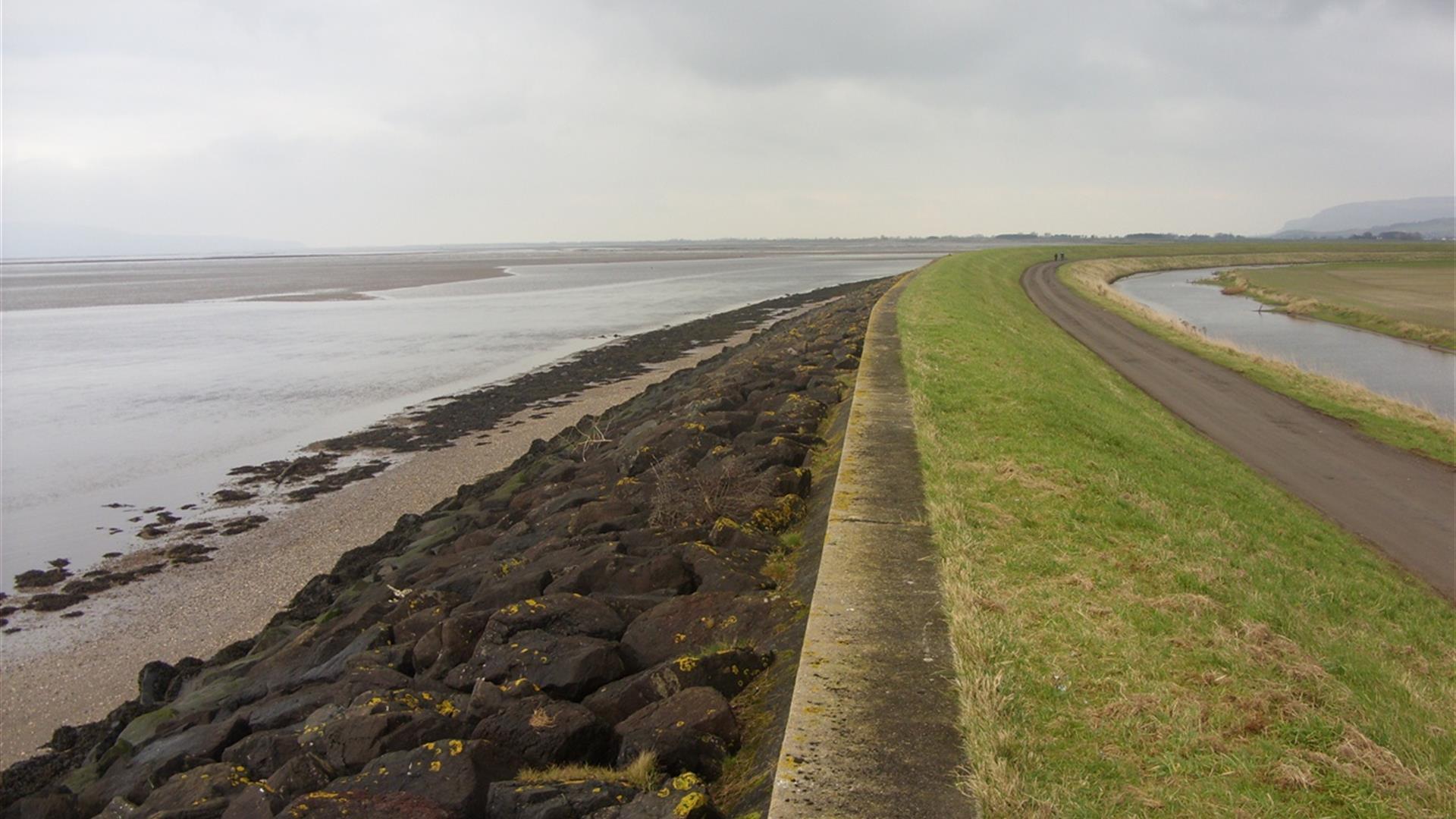 Flat path along the sea wall, uneven in places
