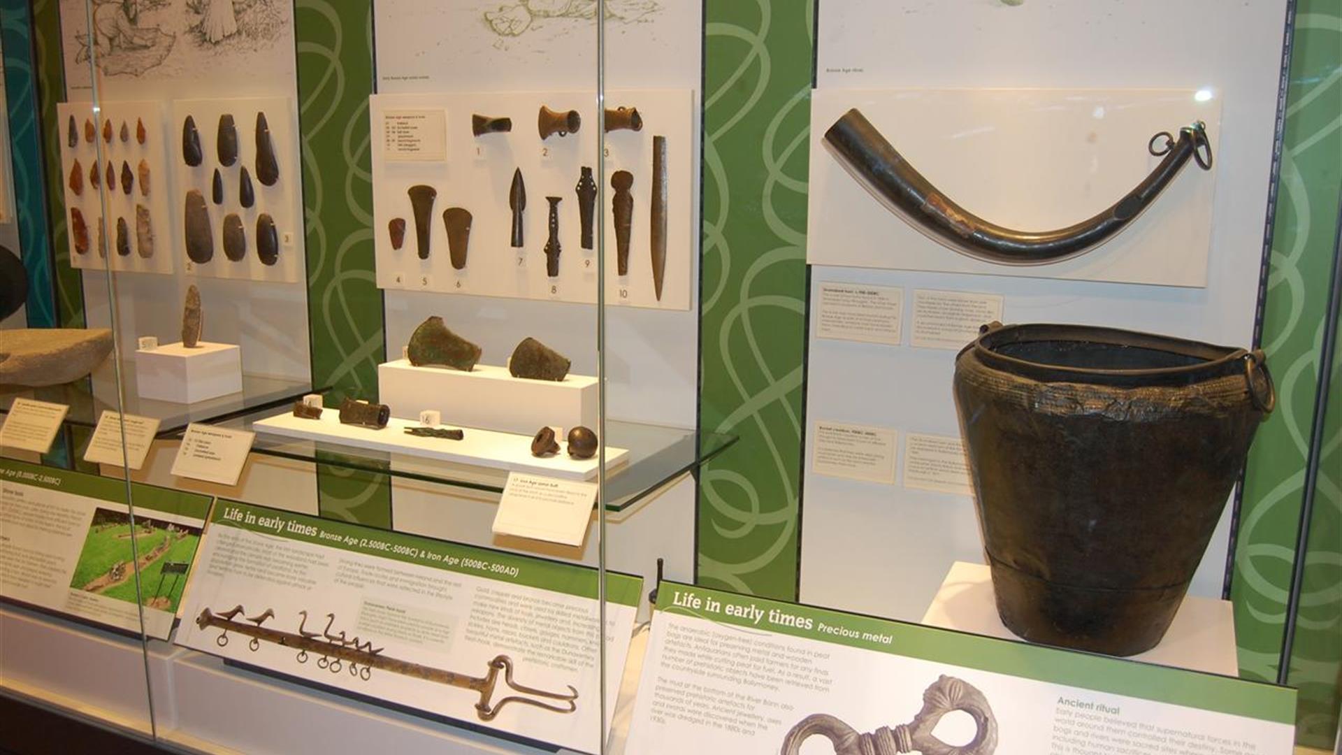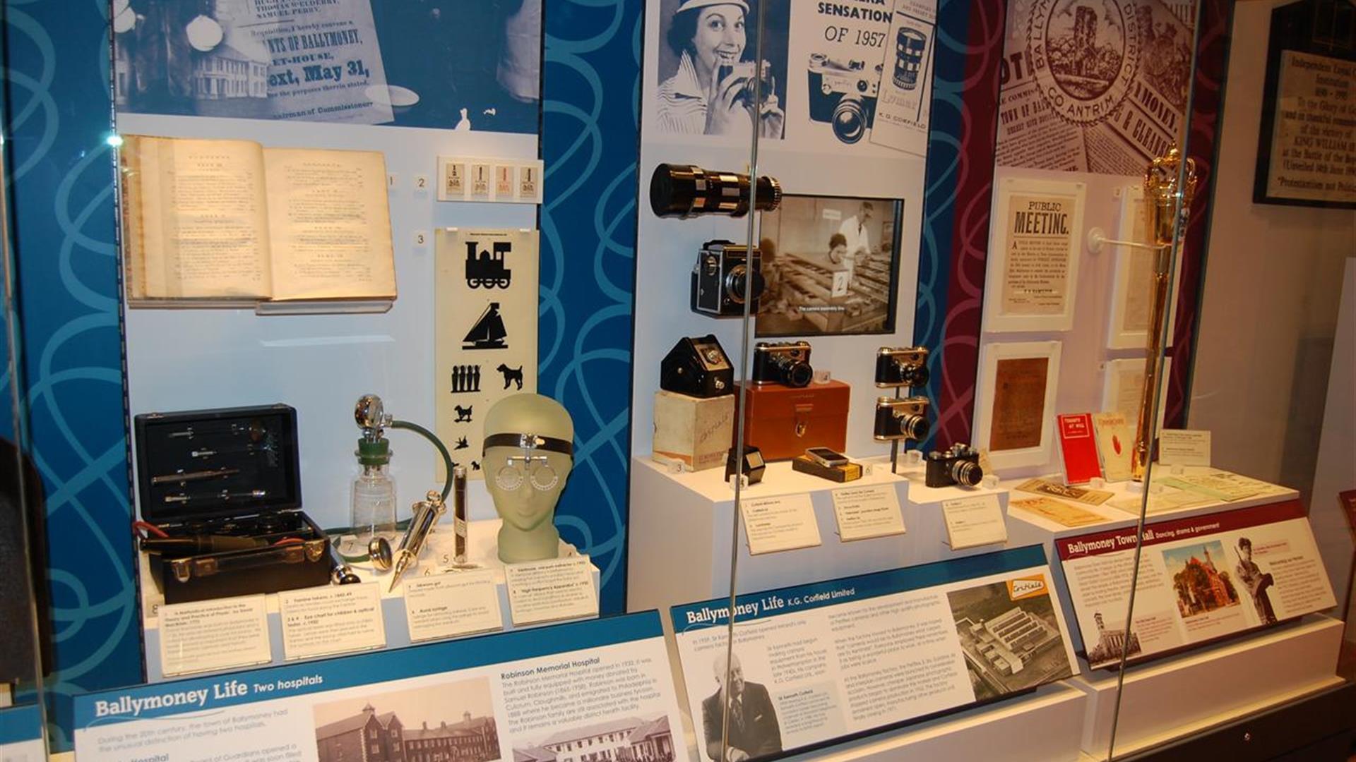 Ballymoney Museum is located within the Town Hall and offers visitors the opportunity to explore the vibrant history of the area. The permanent exhibition includes the story of the area since early times including the mystical Derrykeighan Stone from which the museum takes its enigmatic logo, the 1798 Rebellion, local involvement in the two World Wars, the Corfield Camera factory and the history of Road Racing in Ireland. Also provided as part of the cultural services events programme are temporary exhibitions exploring specific local stories and a History Resource Area that contains information useful for genealogical research. The Visitor Information Centre is also located within the building.