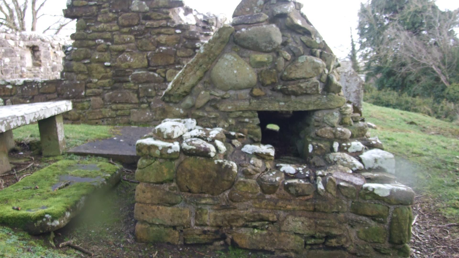 The old church at Bovevagh is situated on a promontory above the Bovevagh River. The name is derived from "Both Maeve" meaning "The Church of Maeve". The earliest reference to a church being here was recorded in 1100 AD when a wooden church was burned. The medieval church we see today was in use over a long period. Locally it is believed the mortuary house is the tomb shrine of St Ringan