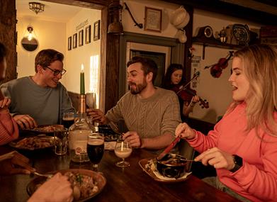 Following a relaxed introduction, you’ll take your seat for supper as traditional Irish music plays. The menu focuses on locally-sourced produce and includes such favourites as Irish stew and shepherd’s pie. You’ll want to sample the colcannon too. Another local speciality, it's made with mashed potatoes and kale. Supper is served with wheaten or Guinness bread, followed by cups of tea and delicious shortbread biscuits! A hearty meal which sets you up for the evening ahead.