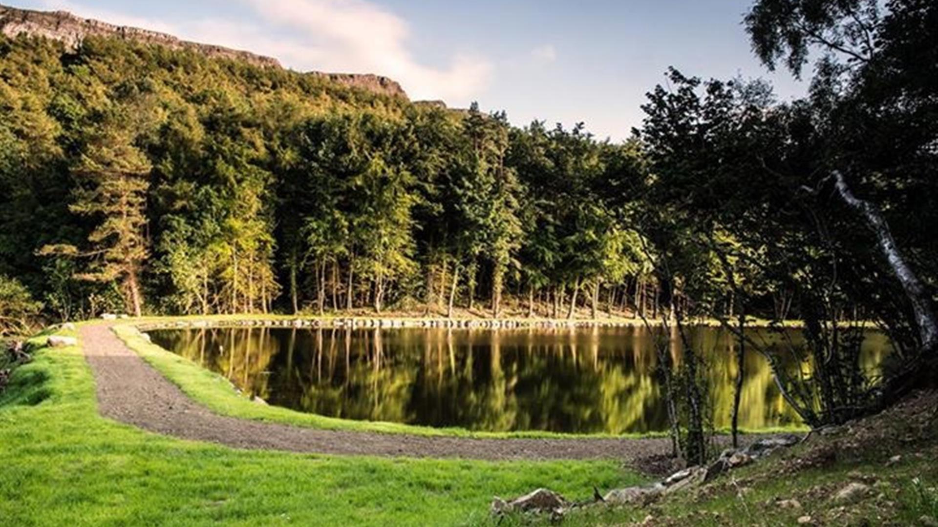 At the foot of the spectacular Binevenagh Mountain on the North Coast of Ireland, Duncrun Fishing Lakes are situated in an Area of Outstanding Natural Beauty.The lakes nestle in mature woodland of 20 acres close to Limavady, Coleraine and Derry~Londonderry, offering excellent fly-fishing and bait fishing for Rainbow Trout. Some of the most spectacular views can be seen including Inishowen and Scotland.