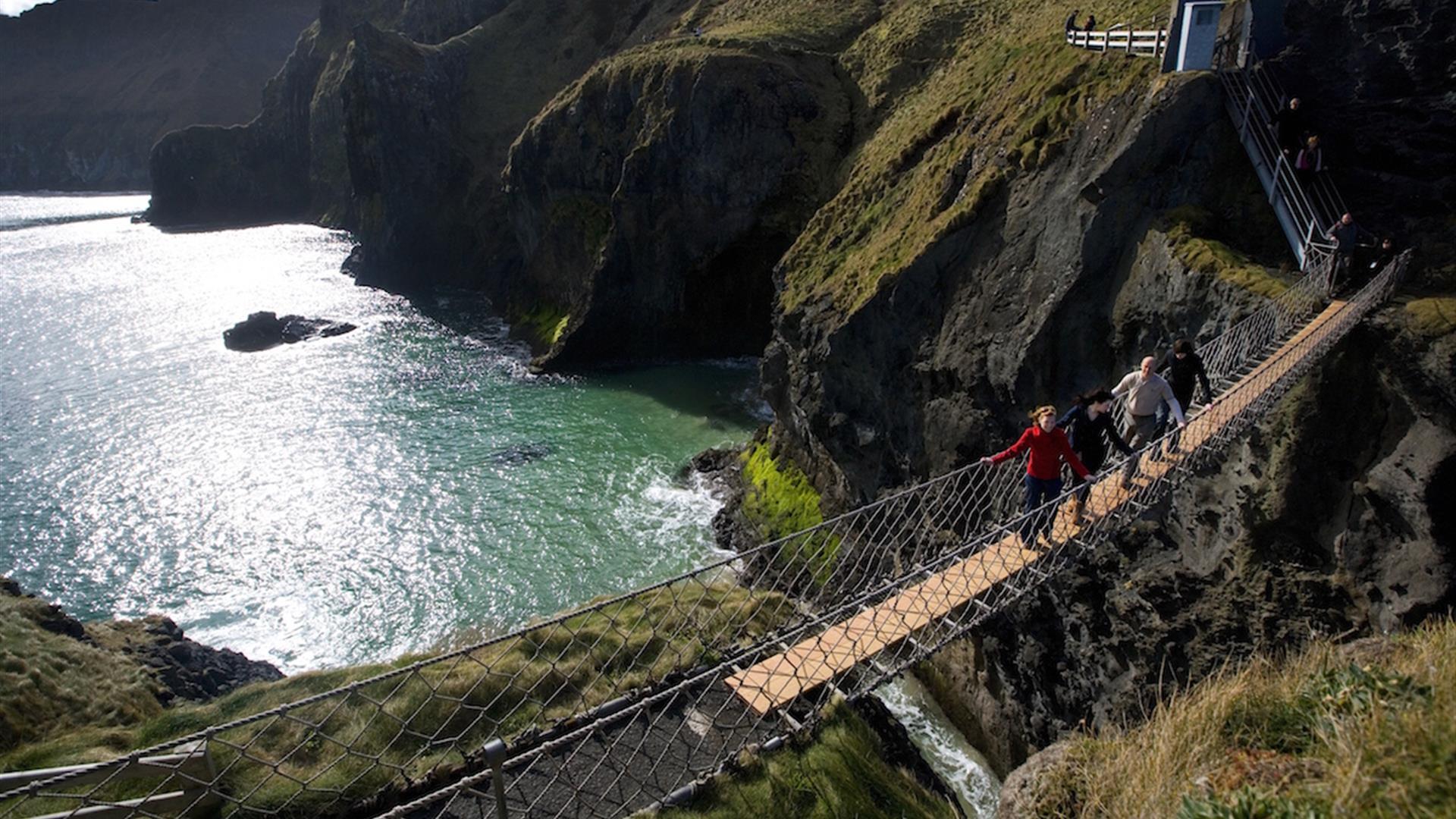 Its name comes from the Irish, "Carraig a' Raid,"meaning "rock of the casting”, and the bridge in its current form was constructed in the year 2000. However, it is believed that rope bridge has been used to reach the island for more than 350 years for fishermen to harvest salmon - in the 70s it consisted of just gaping slats with a handrail!