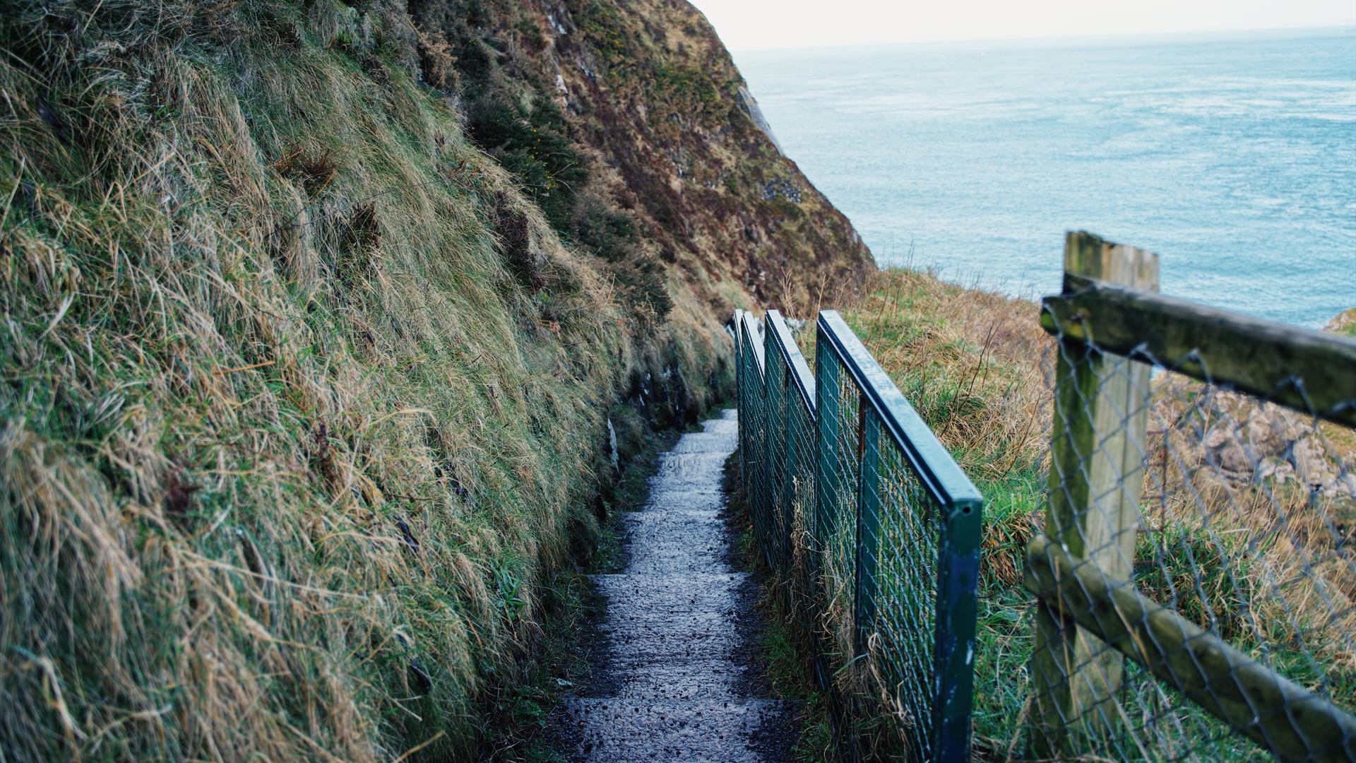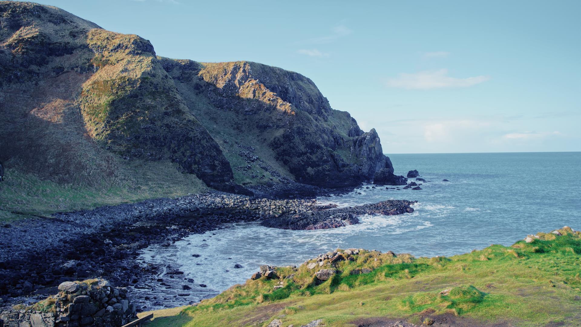 Access involves a steep stairway down the cliffside, but the reward is a peaceful, windswept site steeped in history and surrounded by stunning coastal scenery. It’s a perfect stop for those exploring the Causeway Coastal Route.