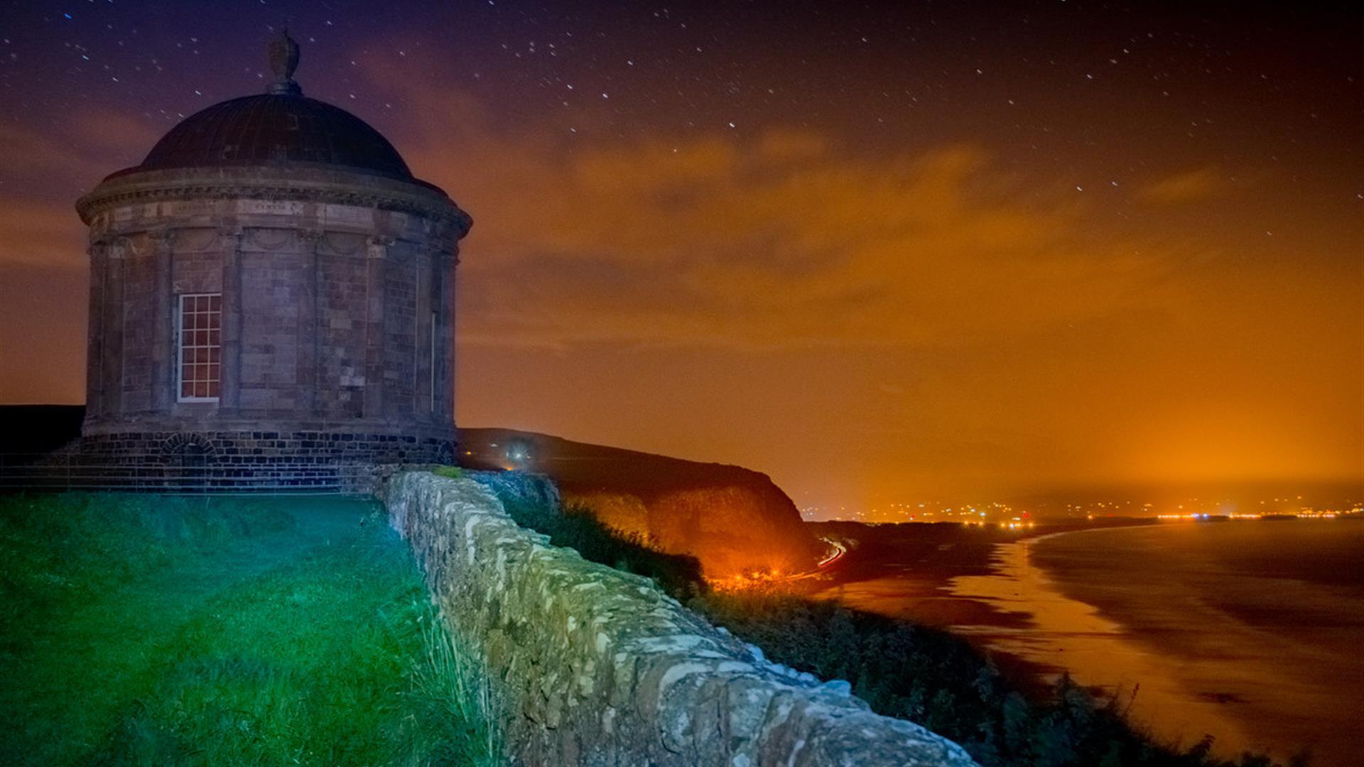 Mussenden Temple is located in the beautiful surroundings of Downhill Demesne near Castlerock in County Londonderry. It perches dramatically on a 120 ft cliff top, high above the Atlantic Ocean on the north-western coast of Northern Ireland, offering spectacular views westwards over Downhill Strand towards Magilligan Point and County Donegal and to the east Castlerock beach towards Portstewart, Portrush and Fair Head.