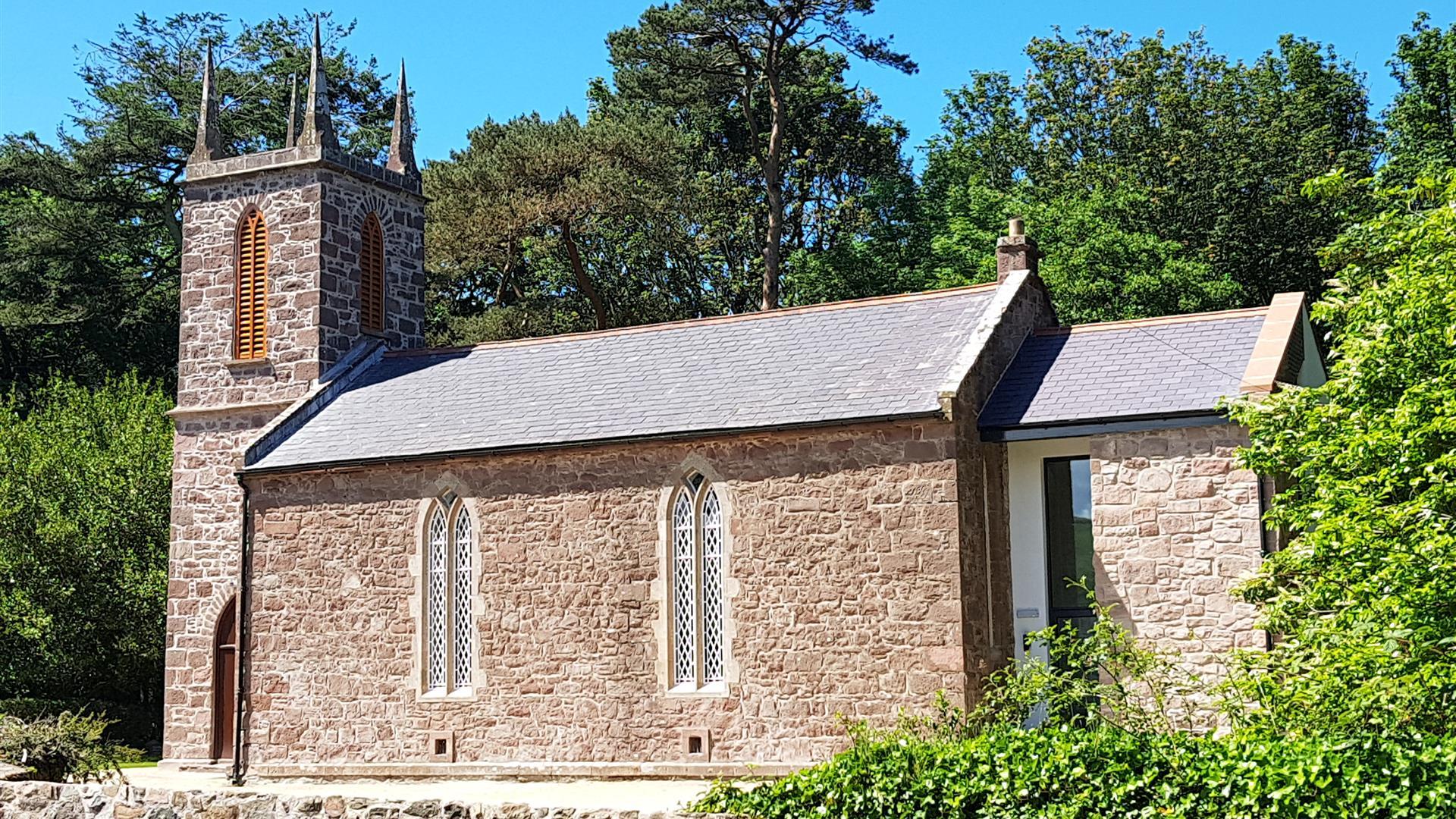 The Old Church is a lovely example of ecclesiastic rural architecture. The interior is plain and unadorned. It is built in locally quarried red sandstone and hosts a distinctive bell tower crowned by tapering corner pinnacles. The interior is plain and unadorned with six clear glass lancet windows, the east, stained glass window bears the coat of arms of the O’Neill’s. The sympathetic restoration of the Church ensured that the original character of the building was maintained, and the new extension required to provide 21st Century conveniences was added in a manner that ensured the integrity of the original structure.