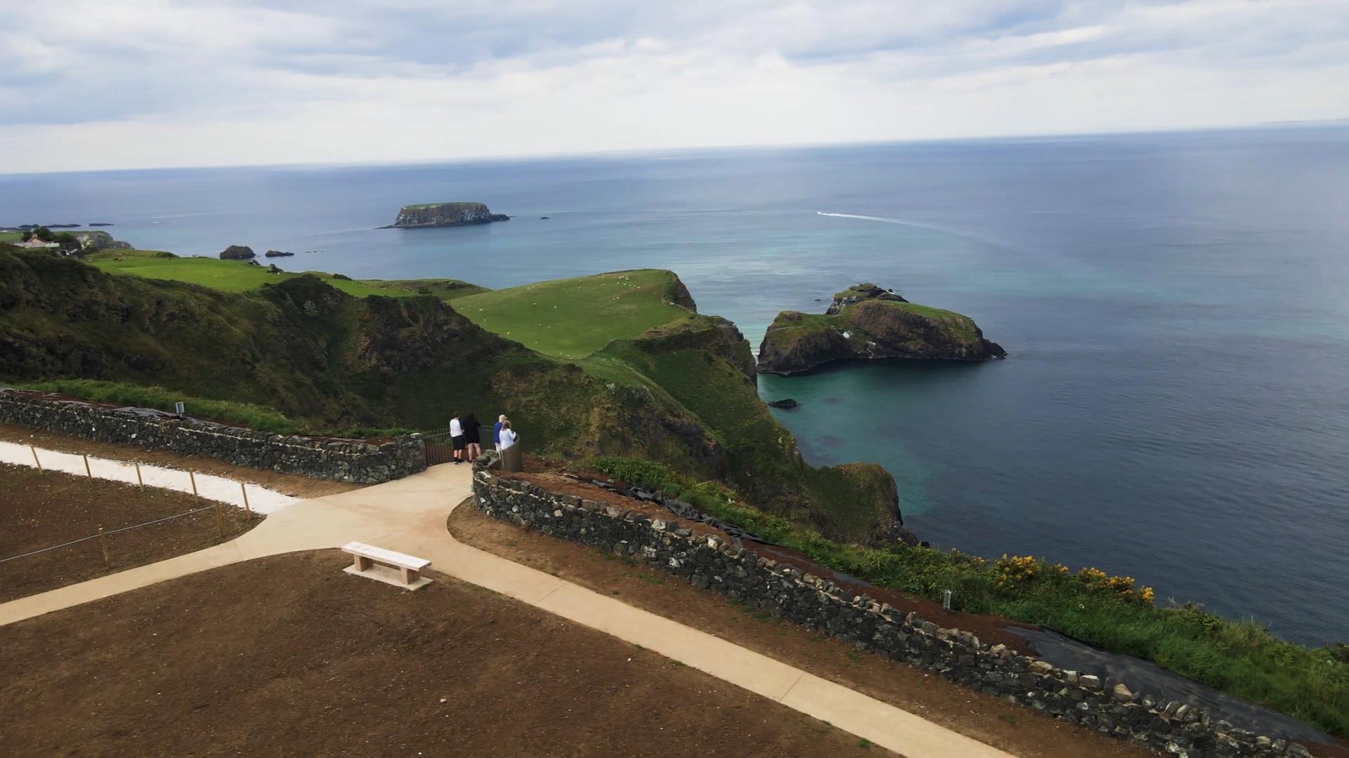 This vantage point looks out over several islands, namely Rathlin, Carrick-a-rede and Sheep Island.