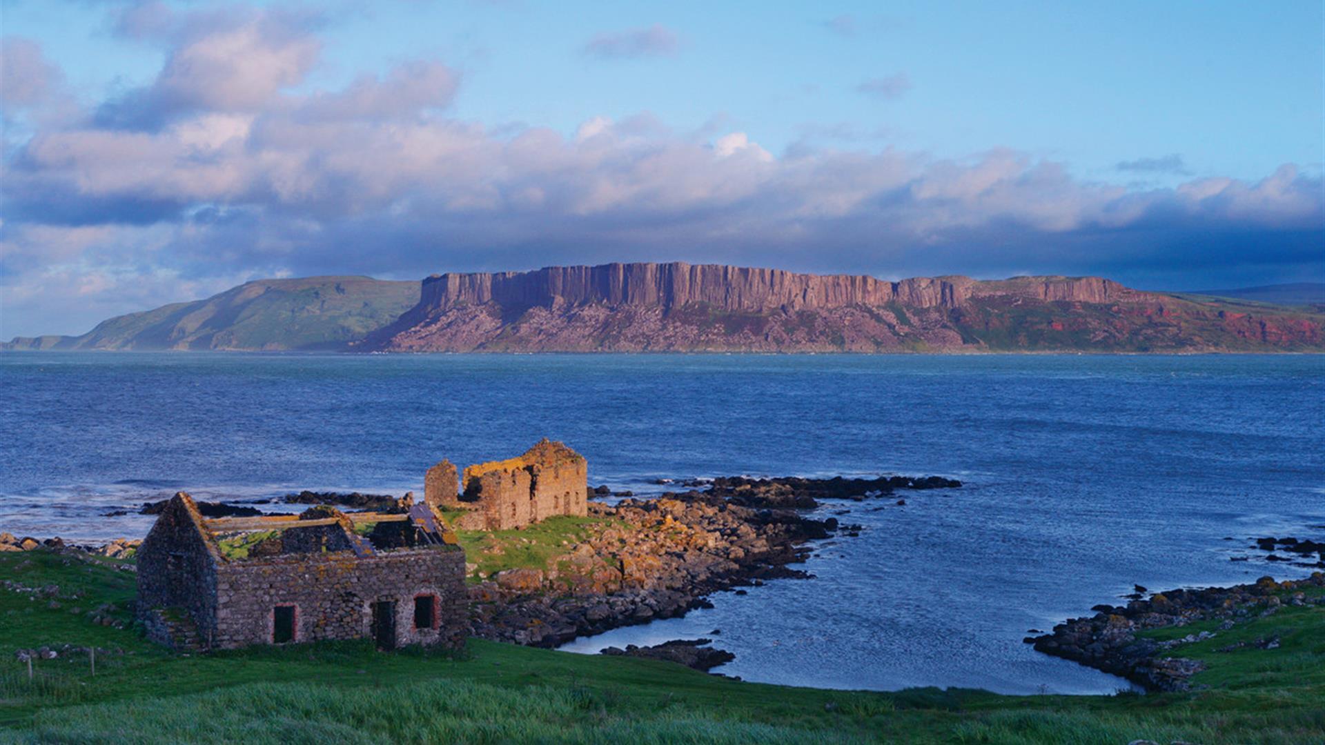 The ferry to Rathlin Island travels just six miles across the Sea of Moyle. This island is six miles long, one mile wide, "L" shaped and home to a slowly increasing population of around 140 people.