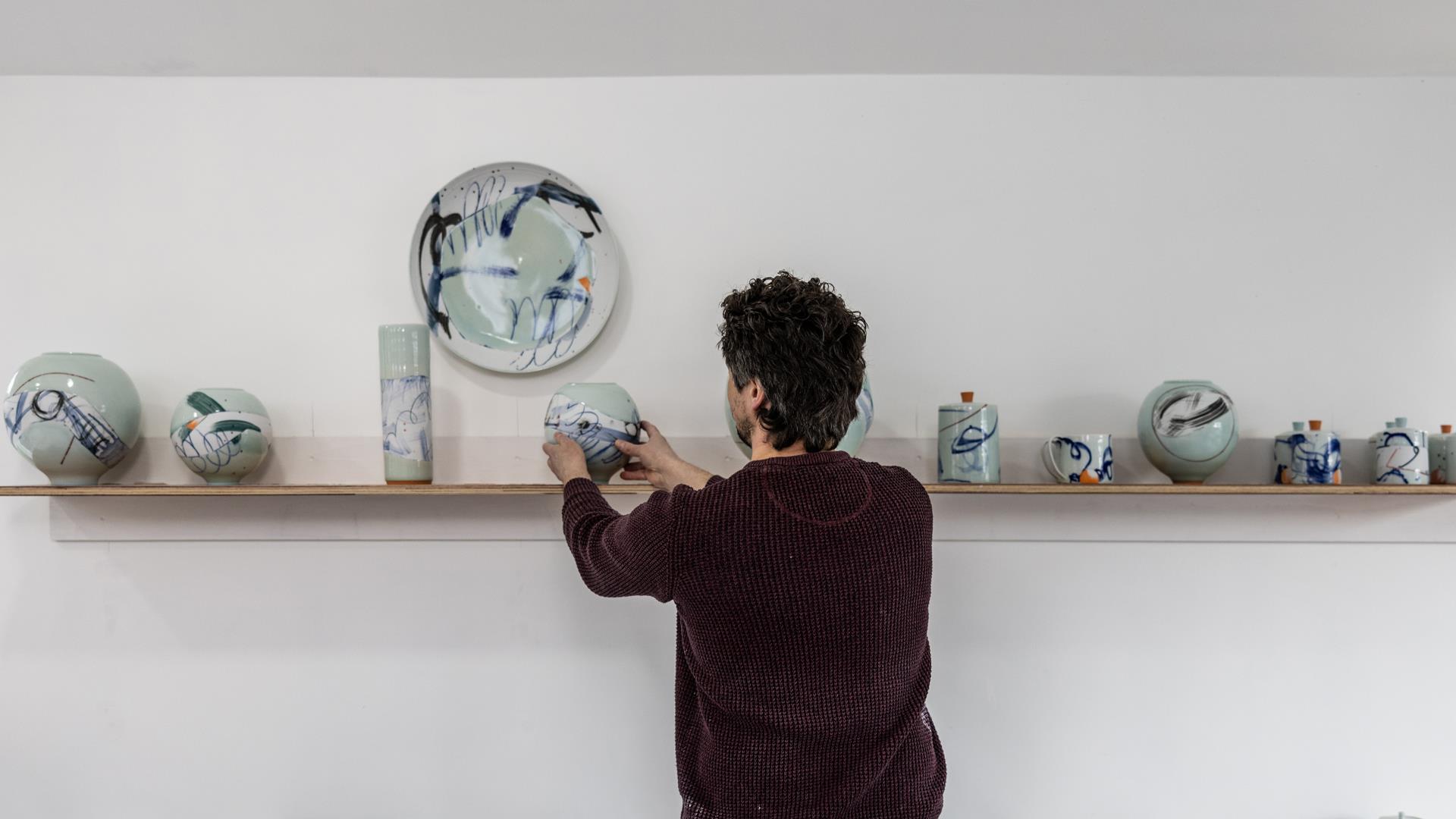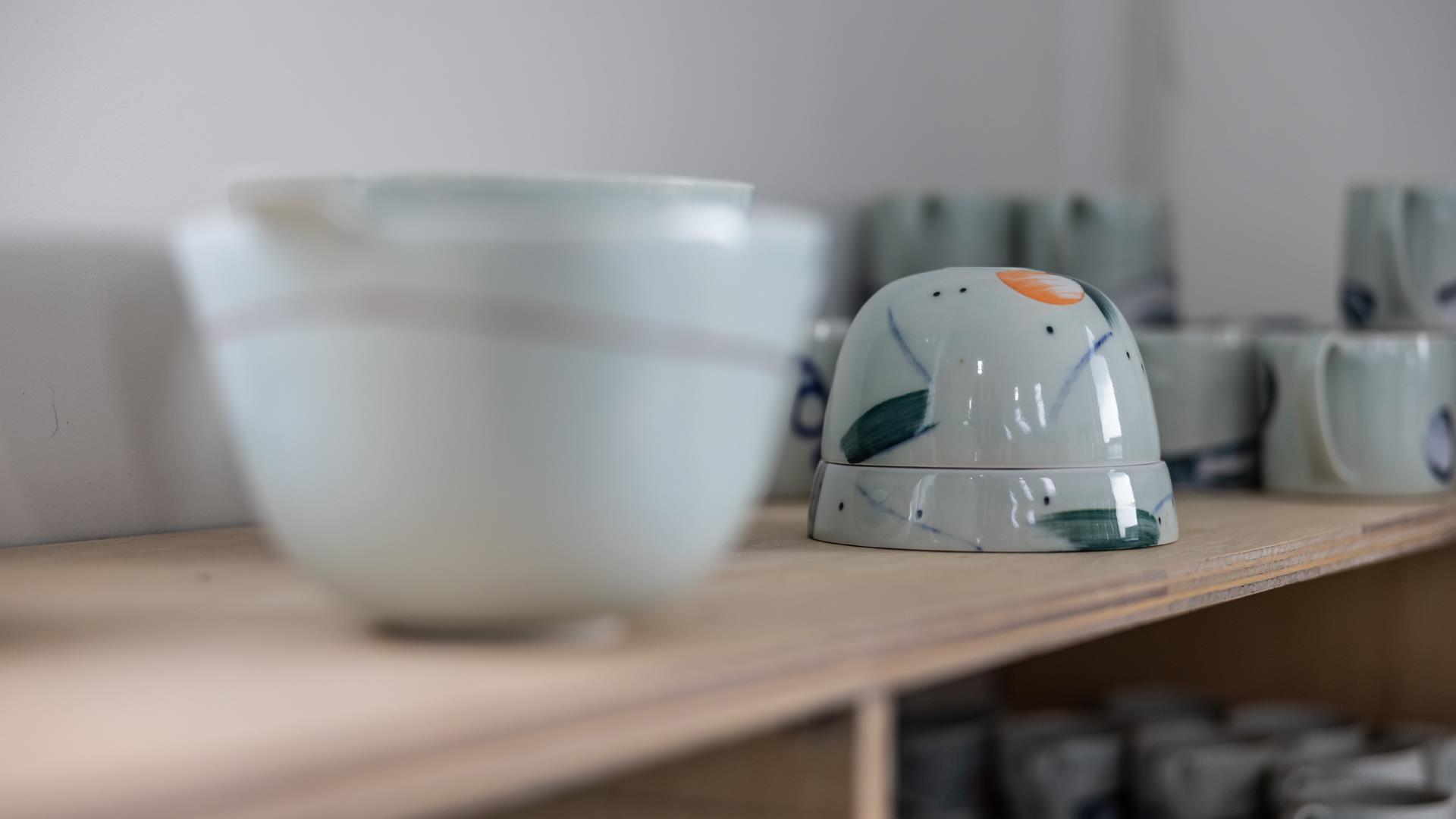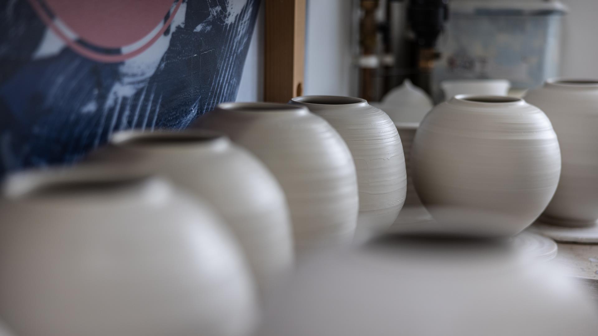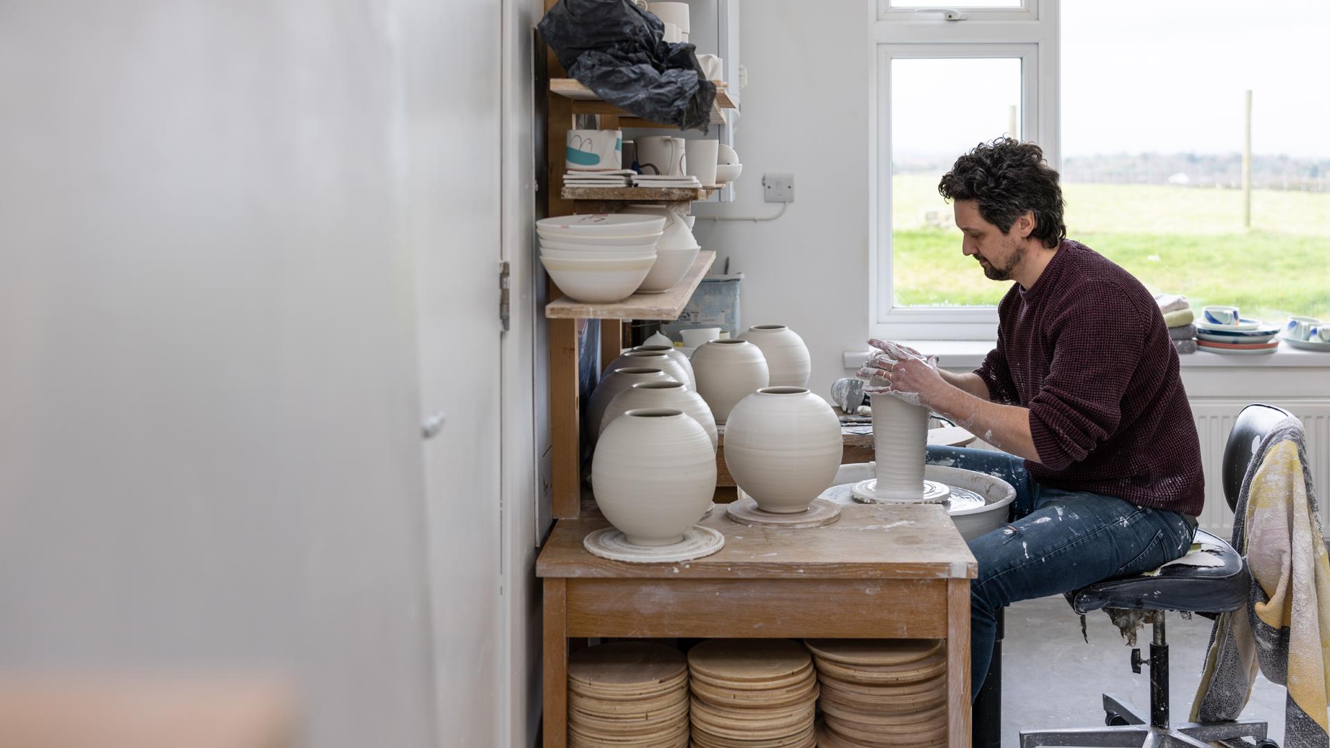 Adam Frew creates functional porcelain pieces and large one-off pots. His pieces are clean, traditional, forms thrown on the potters wheel that subtly show the makers hand and create a sense of life from the craftmanship of his work.