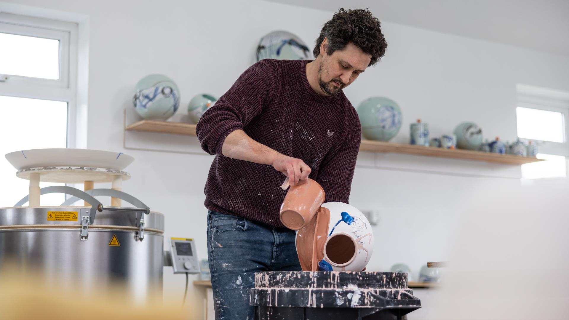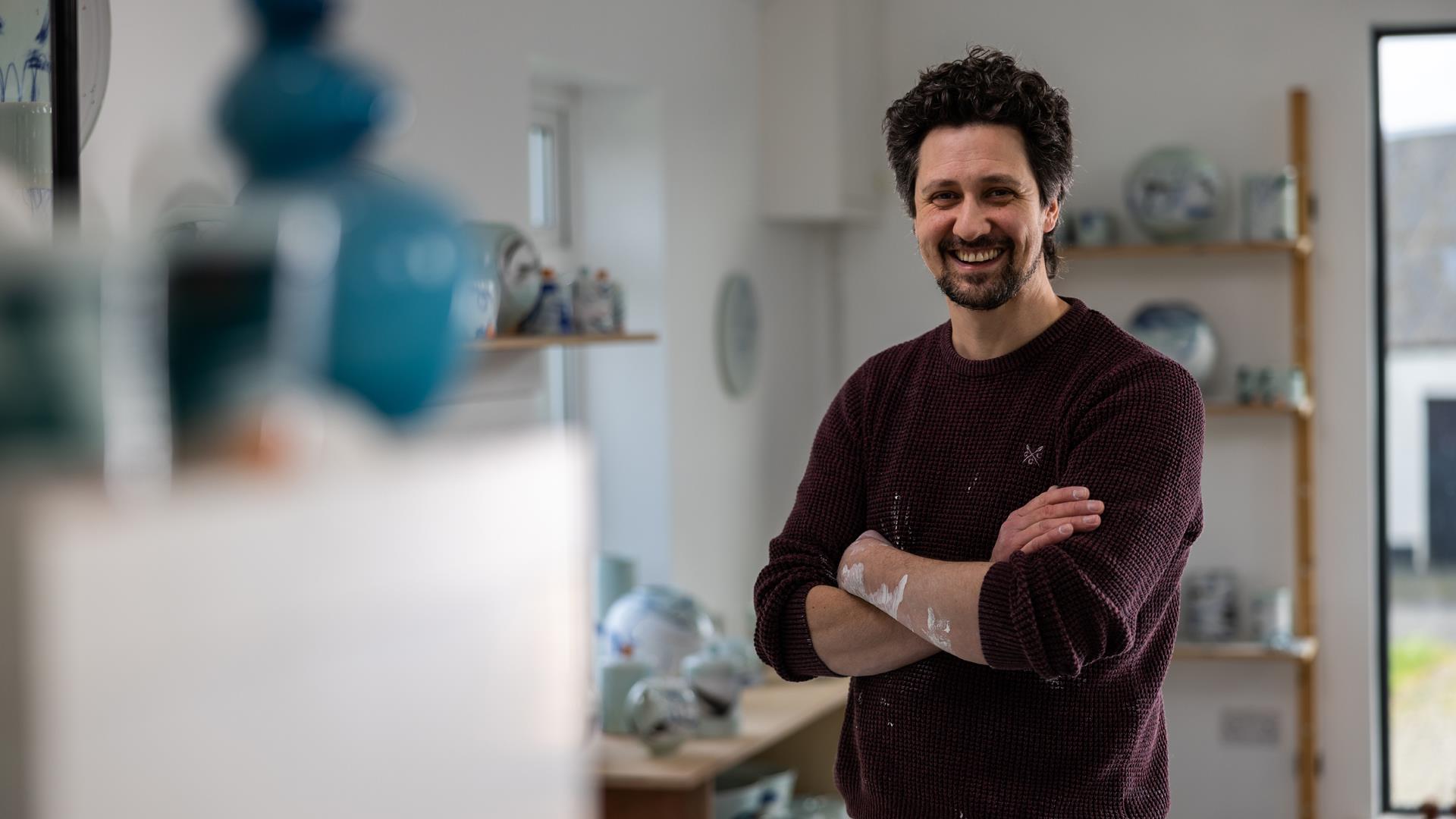 Based in rural Northern Ireland, he works from his barn-conversion studio space beside his home in Aghadowey, County Londonderry.