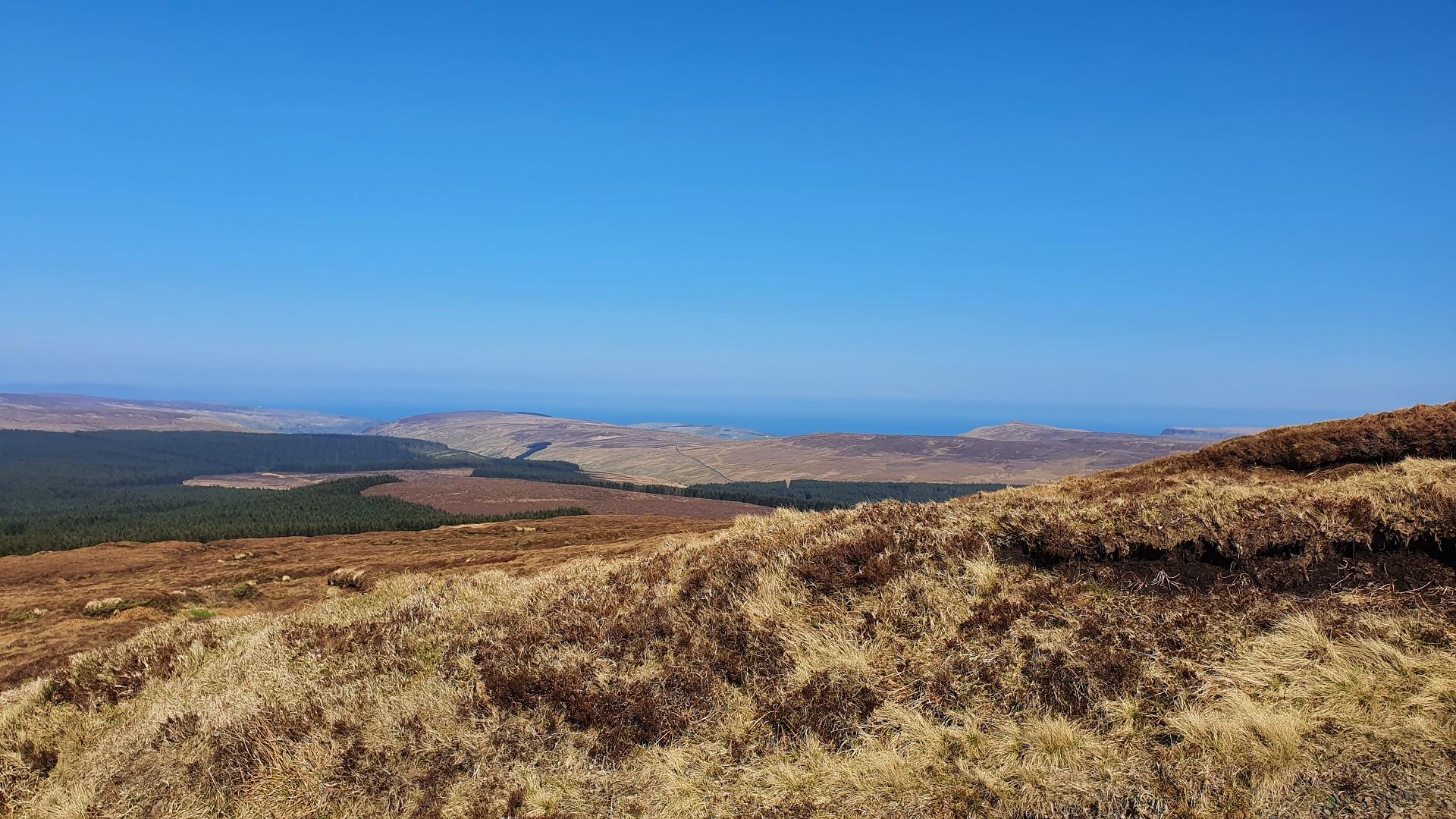 On reaching the summit, in suitable weather conditions walkers are rewarded with fantastic panoramic views. Knocklayd, Rathlin Island and the outline of Scotland are visible to the north and north-east, while Donegal and the Sperrins appear on the horizon to the west. The volcanic plug of Slemish provides interest to the south, with Lough Neagh glimmering when the sun shines.