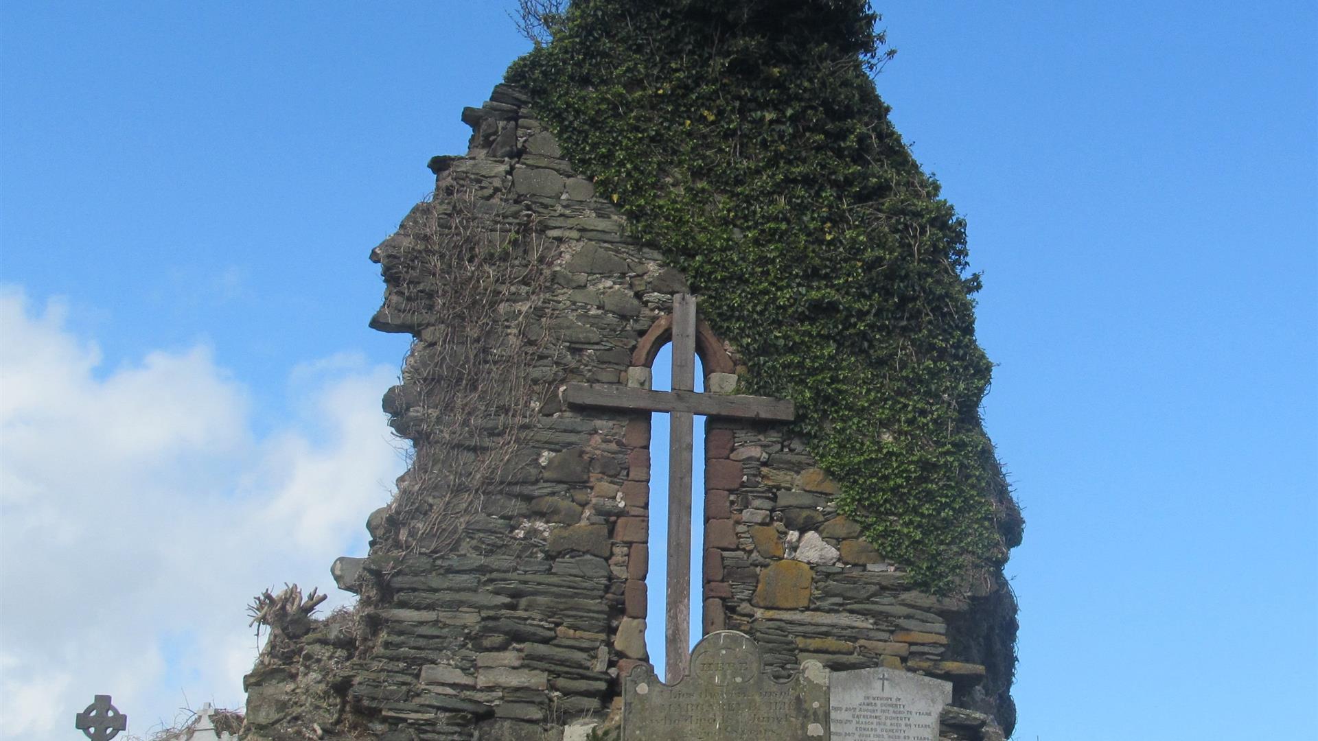 The Church, originally known as Tamhlacht Oirthear Arda, became known first as Teampall Chadáin or St Cadan’s Church, and this through similarity in pronunciation was altered to St Aidan’s. St Cadan was a follower of St Patrick and his grave lies under the gable of the medieval ruins. The water from the nearby holy well is said to cure ills when applied to the afflicted area.